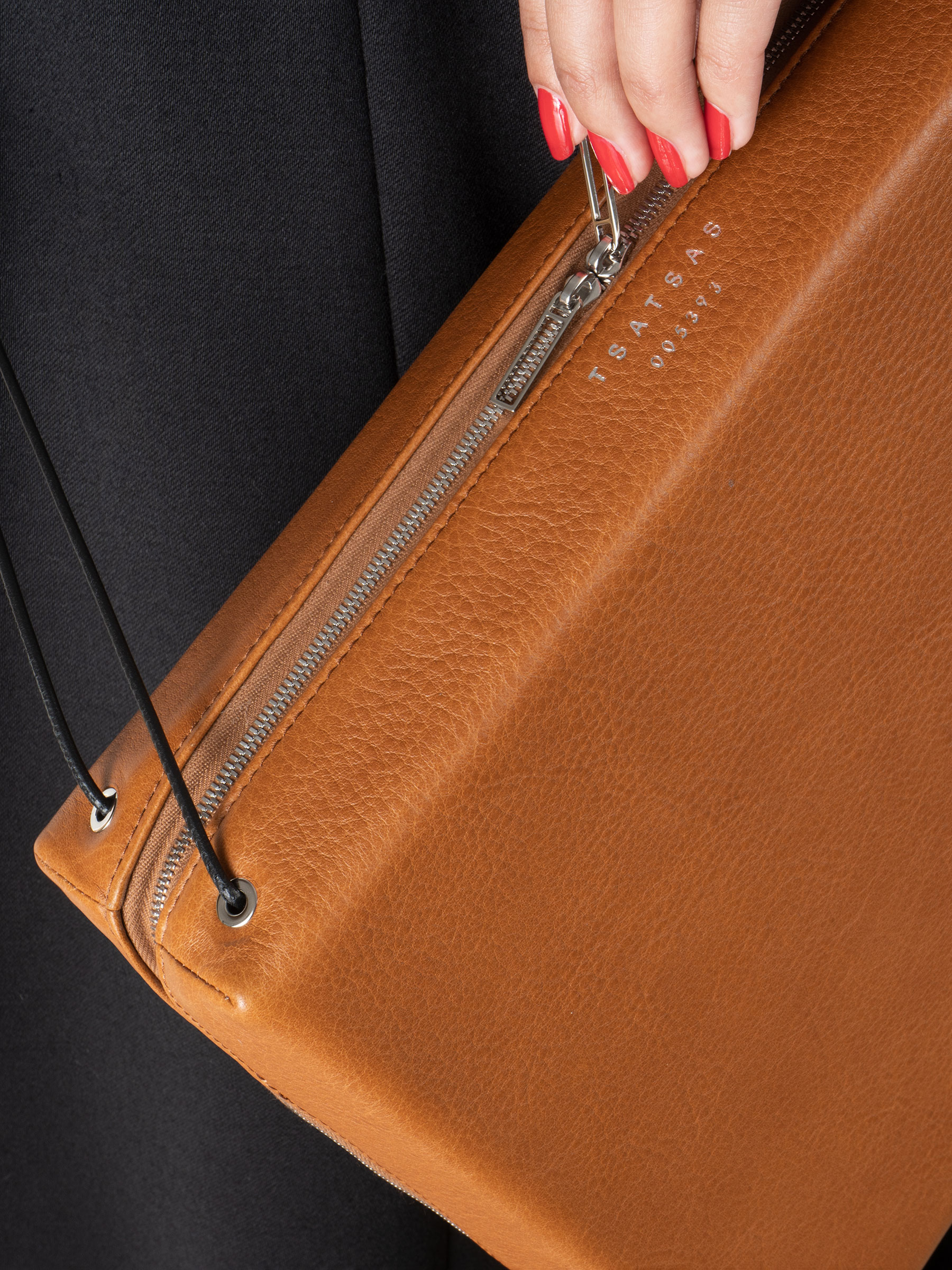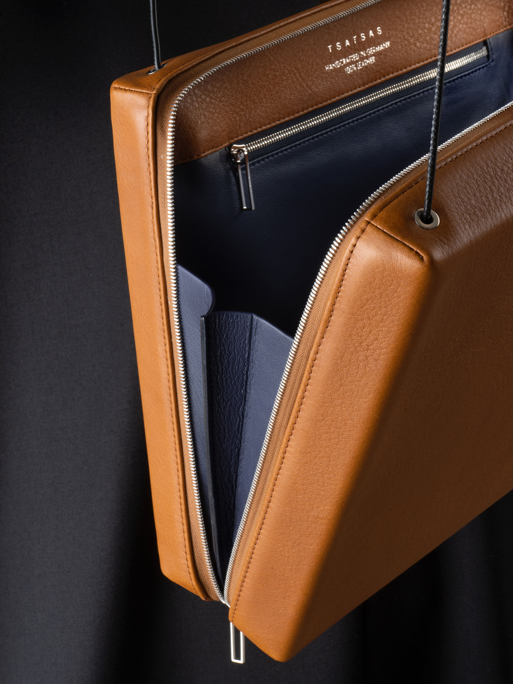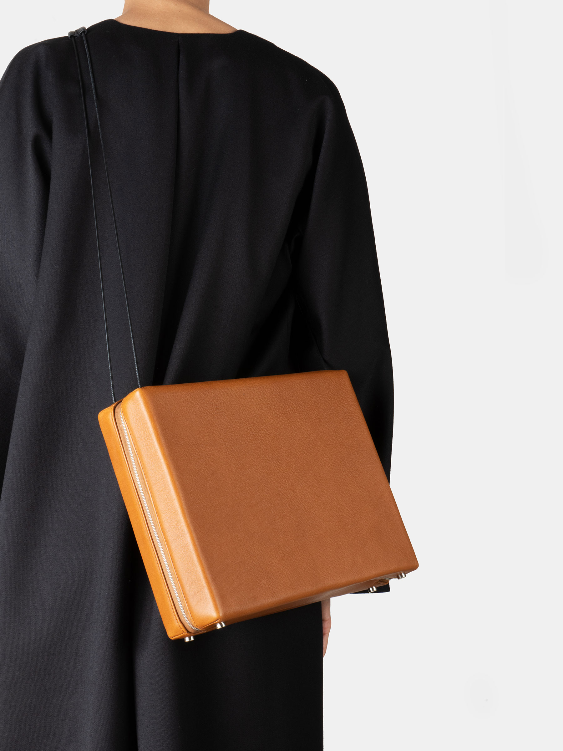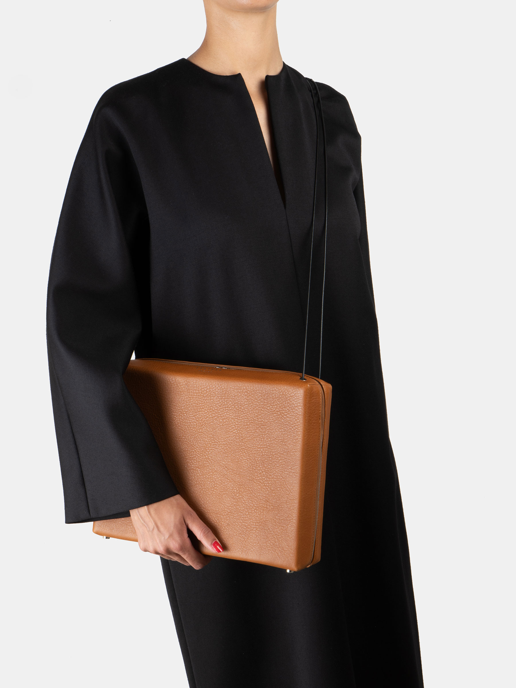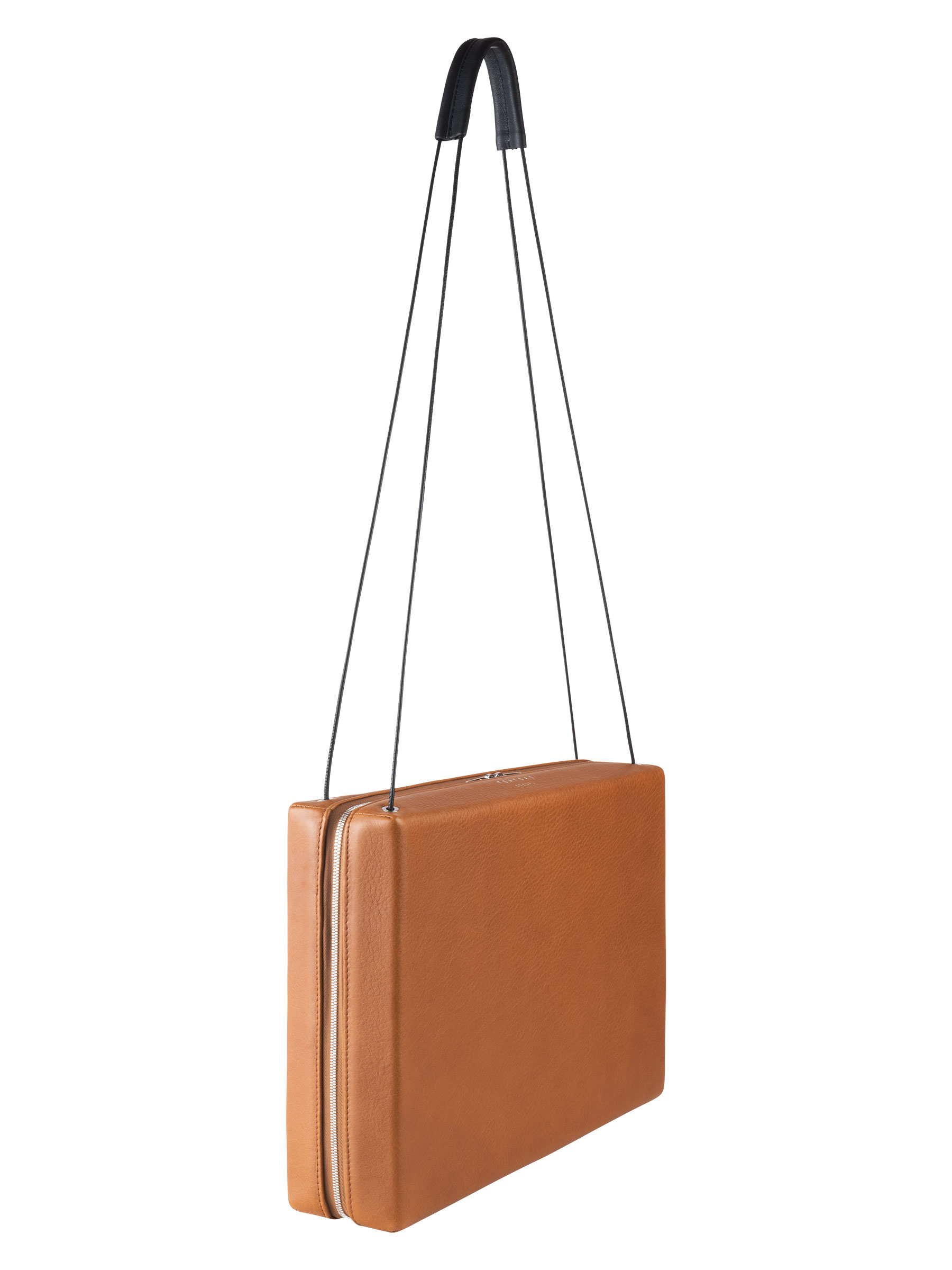 The clear-cut rectangular shape of LINDEN 43, designed in 2014, stands in high contrast to the fine leather straps that emerge from the inside of this shoulder bag. The zip-around closure makes the interior easy accessible, while leather gussets ensure that the shoulder bag can fan out widely while all valuables remain safely inside. The modern statement piece is also a perfect companion for the office, as it fits your daily essentials as well as a 13” laptop.