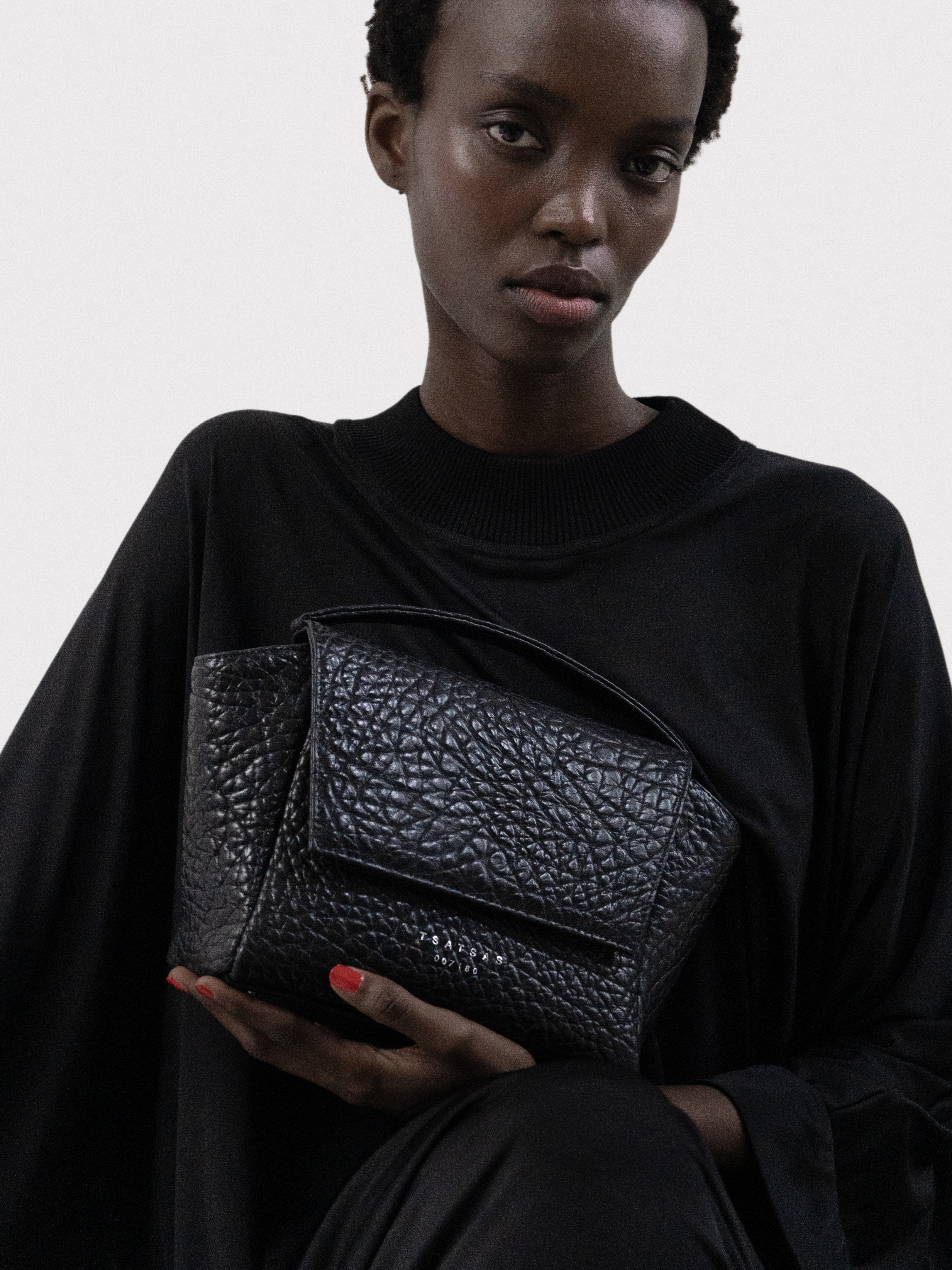 Small hand and shoulder bag in black bison leather