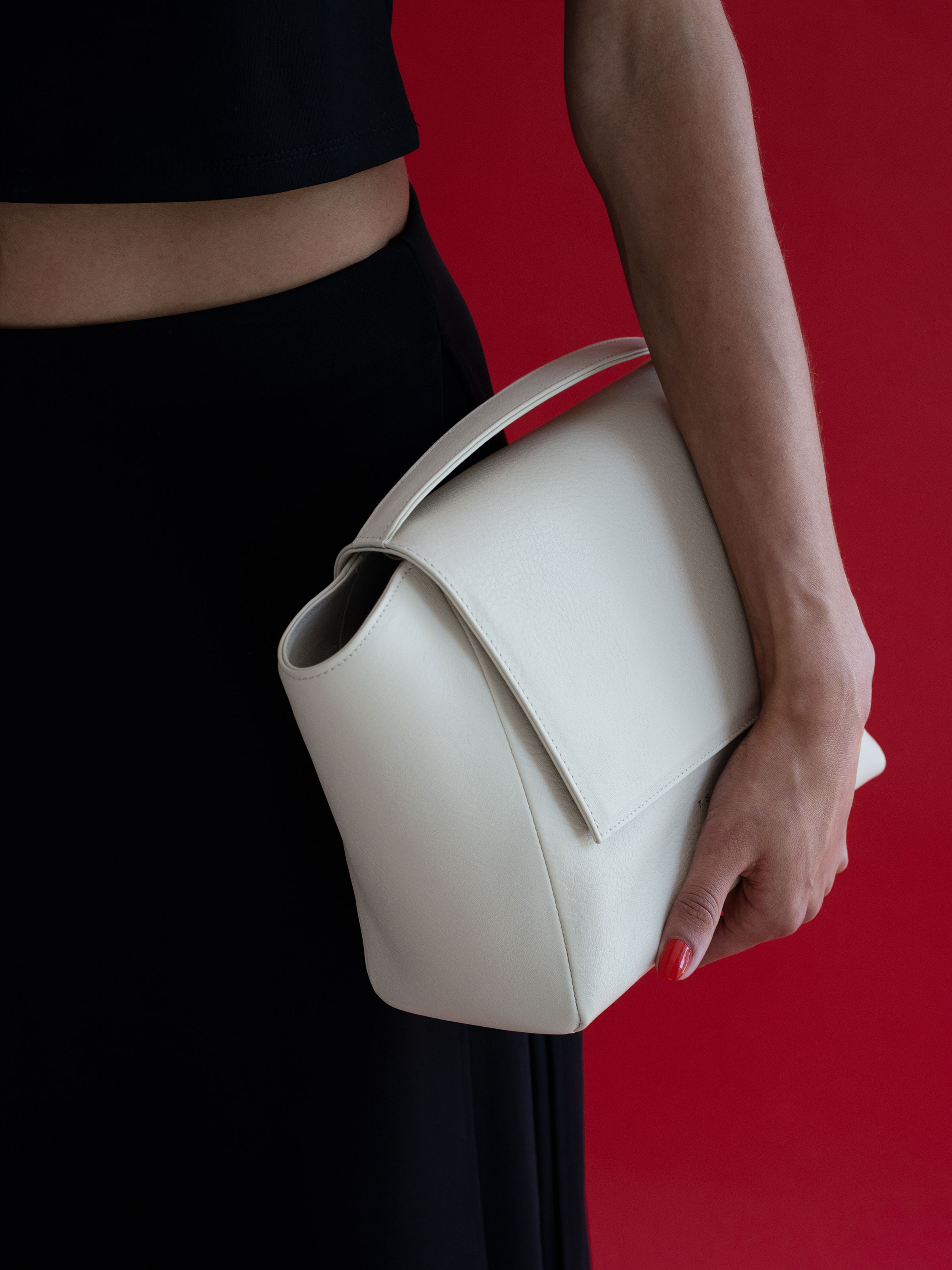 Characterized by its geometric composition, the NEA 2 hand and shoulder bag is a piece of architecture in miniature. Its distinctive side elements that emerge from the bag’s body create a spacious interior with plenty of room for your daily belongings. NEA 2 features an adjustable and detachable shoulder strap, a front flap opening and two internal pockets, of which one fastens with a zip. Base studs of recycled brass round off the solid appearance of the bag. As with all TSATSAS products, NEA 2 is lined with softest pacific blue lamb nappa leather.