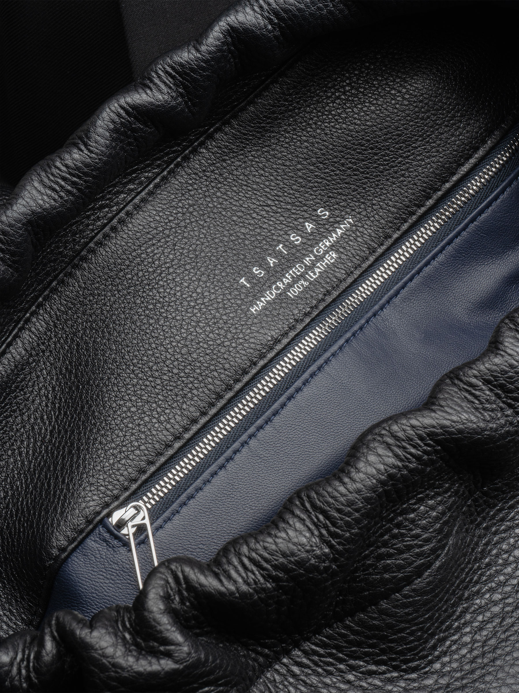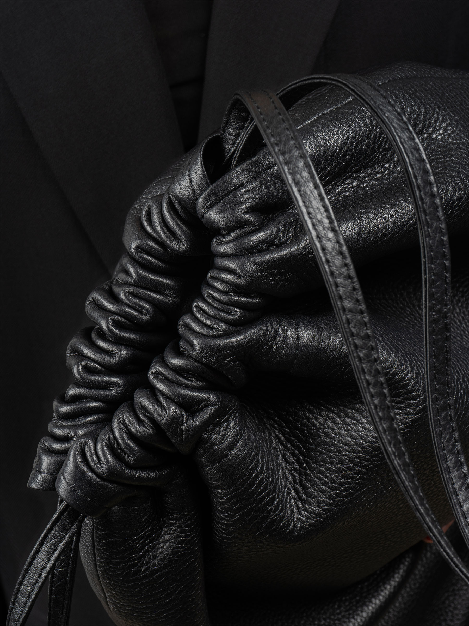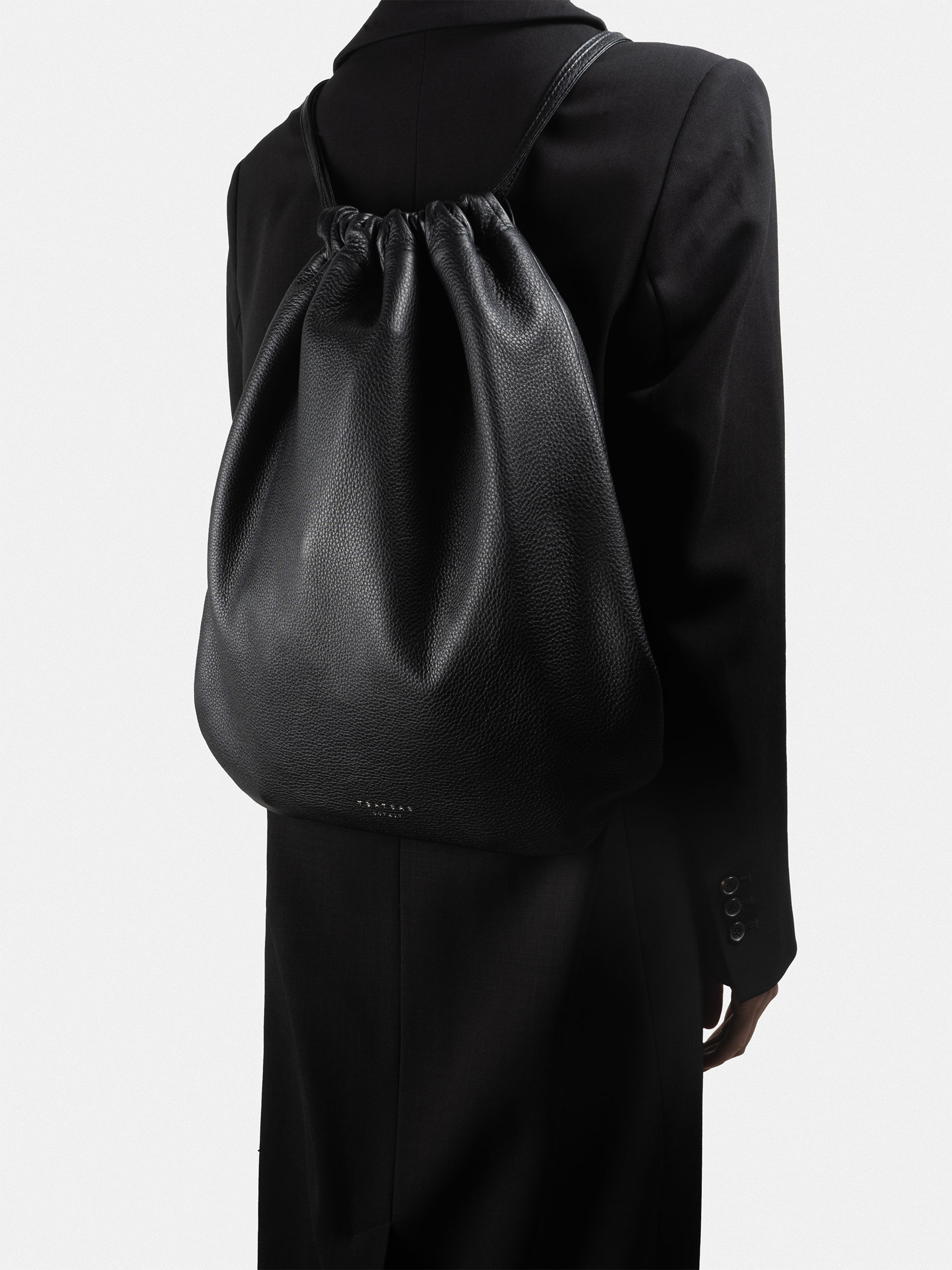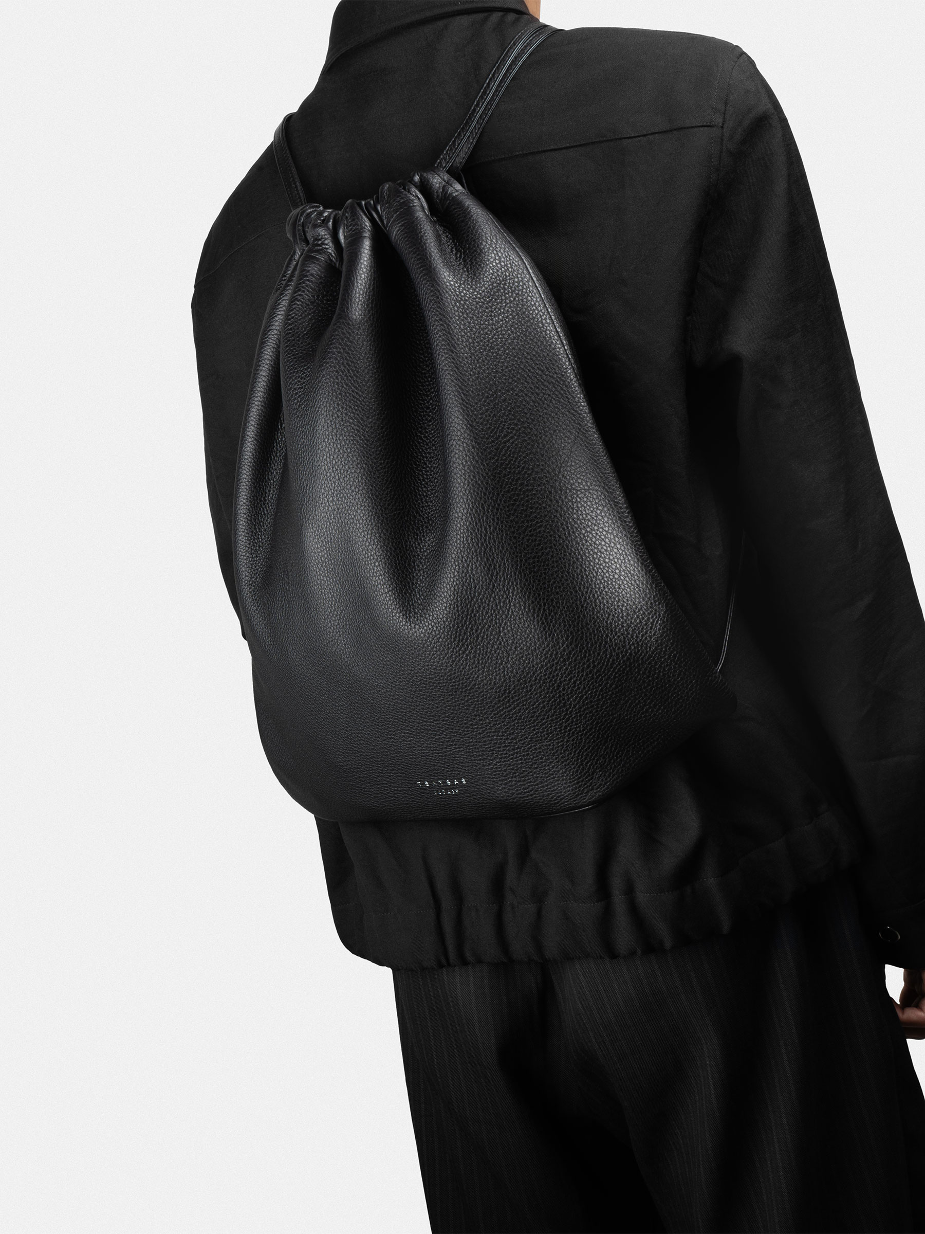 XELA is an understated yet refined drawstring backpack whose supple silhouette adapts to the wearer’s movements, perfectly fitting for a bike ride or a walk through the city. Inspired by the classic gym bag of sports enthusiasts around the world, this sophisticated reinterpretation is meticulously crafted from buttery-soft calfskin. The hand-finished leather straps lie smoothly on the shoulders, ensuring comfort whether worn traditionally on the back or casually over one shoulder. Inside, XELA is lined with the softest lamb nappa leather and features three inner compartments, one of which is secured with a zipper.